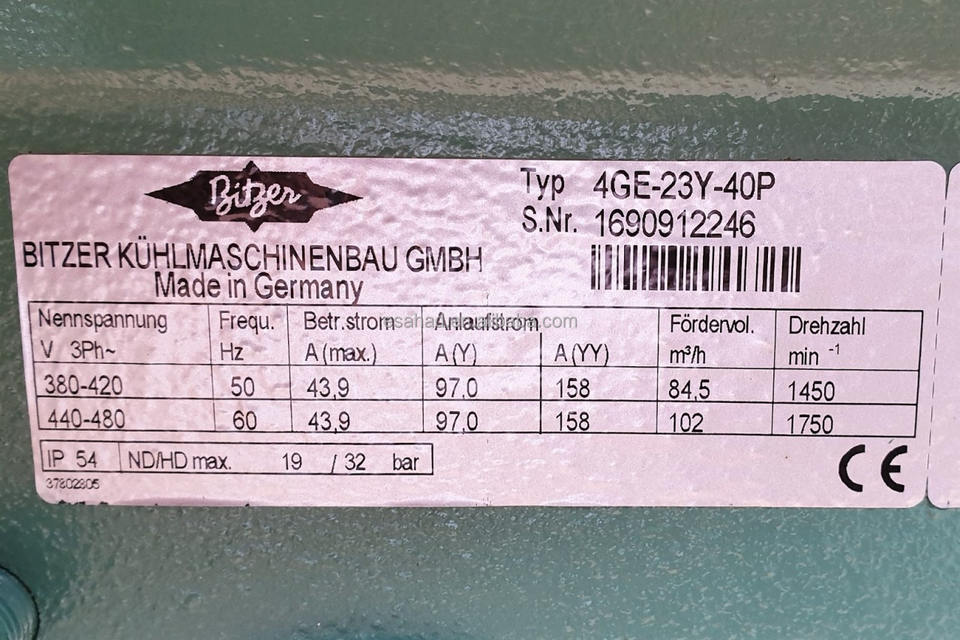 Unidad Condensadora con Compresor Bitzer para Sistema de Refrigeración 4GE-23Y-40P 4GE-30Y-40P