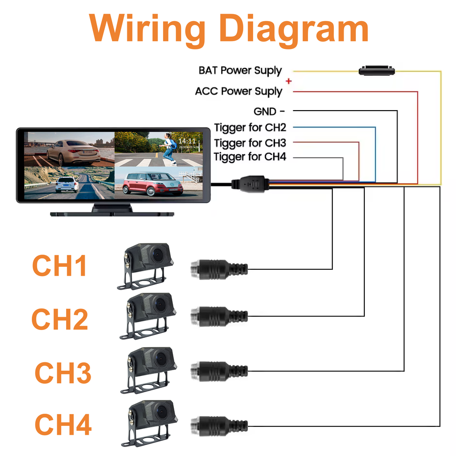 Monitor de la cámara de respaldo de la camioneta de la camioneta del camión del espejo de 4k 10.36 pulgadas de videos de 4ch.