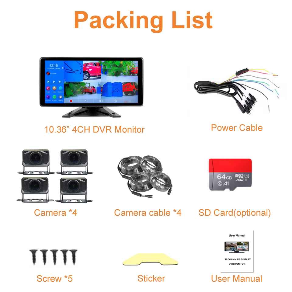 Nombre del producto:10,36 pulgadas de pantalla táctil DVR Monitor y conjunto de cámara