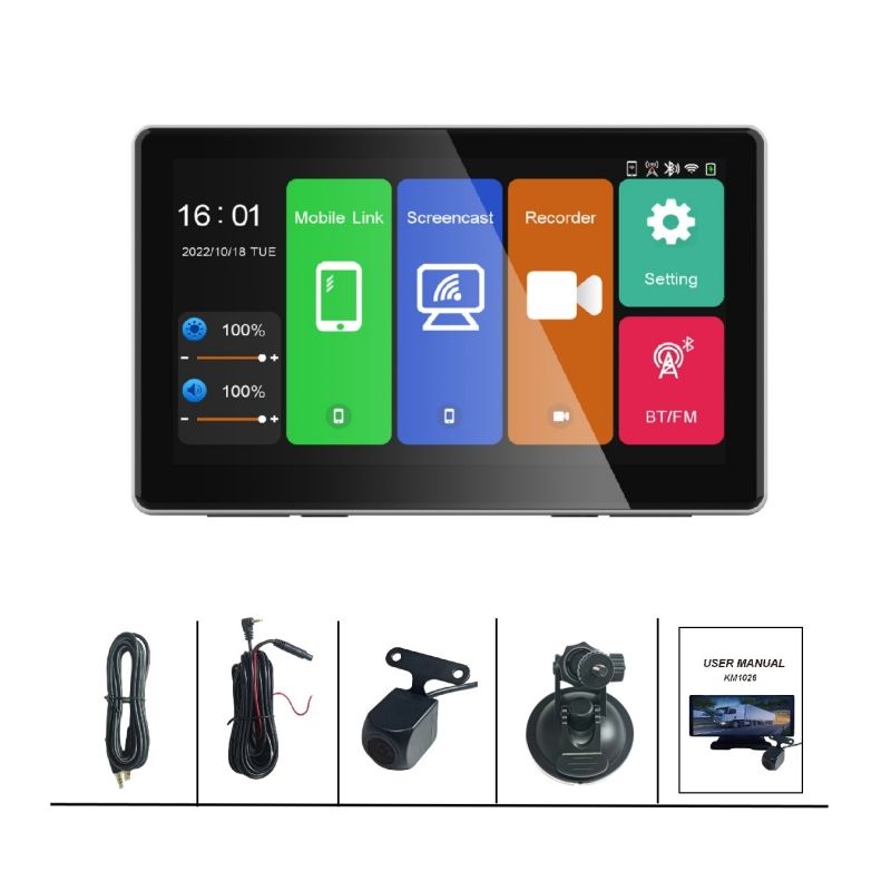 4K + 1080P Cámara dual 7 pulgadas Grabador DVR portátil Carplay Pantalla táctil Inalámbrico Carplay Android Auto