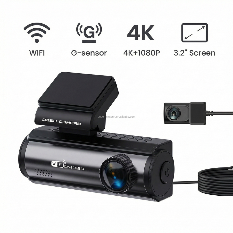 Cámara para Auto 4K con Pantalla IPS de 3.2 Pulgadas, WiFi, Grabación en Bucle, Dos Cámaras y GPS