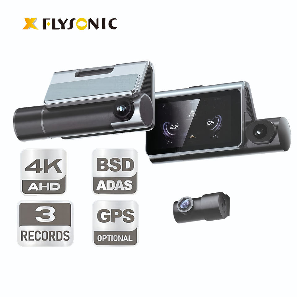 Cámara 4K con Pantalla de 3 Pulgadas, Triple Lente 4K+2K+2K, Visión Nocturna, Lente de 6 Cristales, WiFi, Sensor G, 140 ° Monitor de Estacionamiento con Visión de 24 Horas para Cámara de Coche