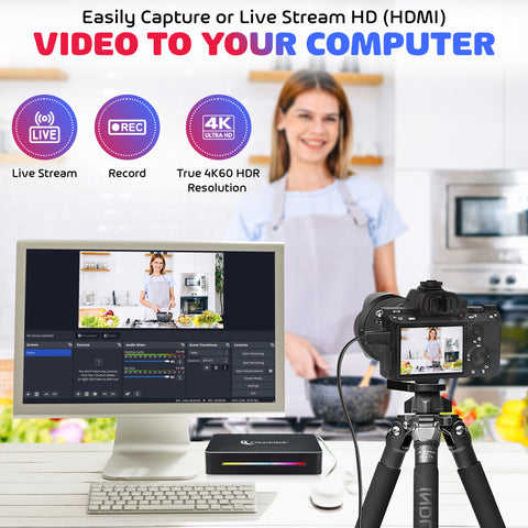 Caja de Captura de Video 4K HD Extreme, Captura y Transmisión en Vivo de Video HD, Grabación True 4K60 HDR, Entrada y Salida HDMI, USB