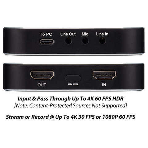 Caja de captura de video 4K HD Ultimate (Edición USB) Graba y transmite en vivo 4K30 o 1080P desde sistemas de juegos HDMI 4K60 HDR