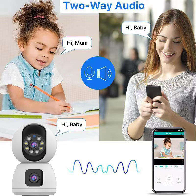 Cámara PTZ WiFi Interior de Doble Lente de 4MP con Visión Nocturna y Rotación Automática de 360° ° Seguridad para el Hogar con CMOS, Compatible con Almacenamiento de Datos en Memoria/SD/Nube