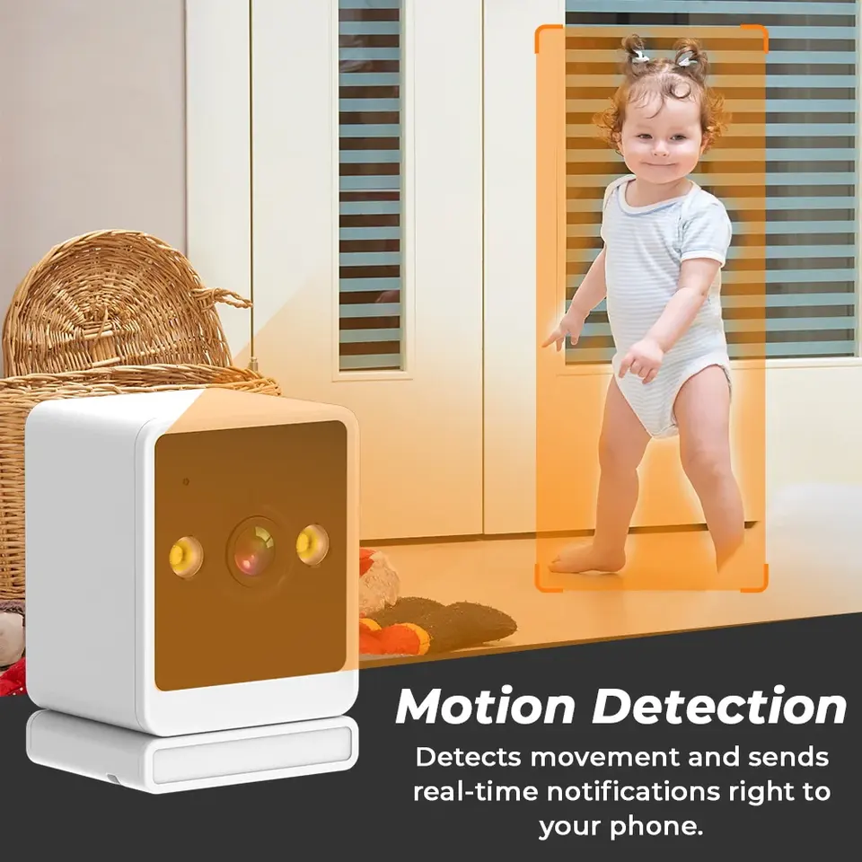 Mini Cámara de Seguridad WiFi Interior de 4MP, Base Magnética, Visión Nocturna HD, Detección Humana por IA, Zoom 4X, Audio Bidireccional, Compatible con Tarjeta de Memoria