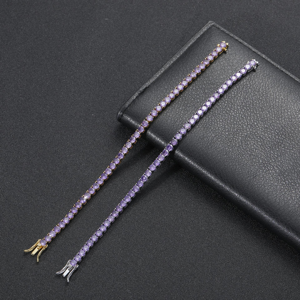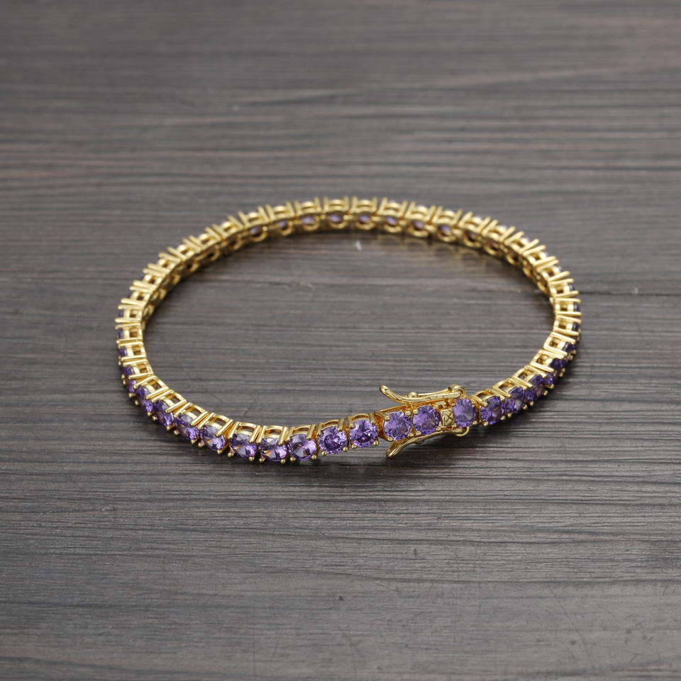 Pulsera de circonio morado dorado de 8 pulgadas (20 cm)