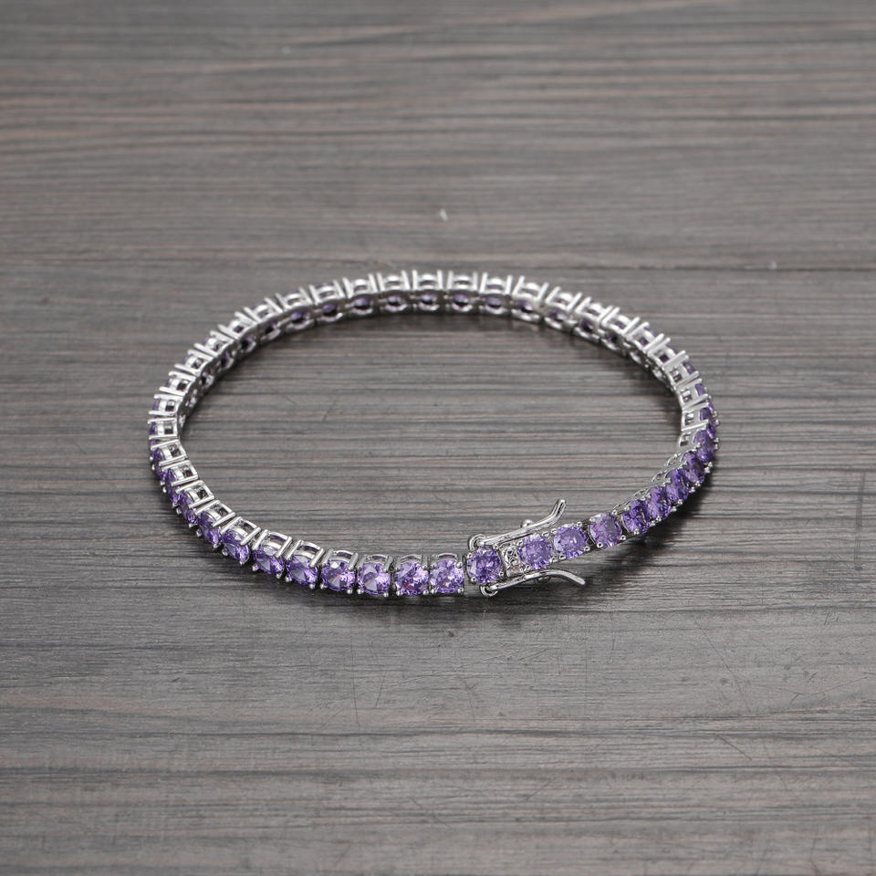 Pulsera de circonio morado plateado de 8 pulgadas (20 cm)