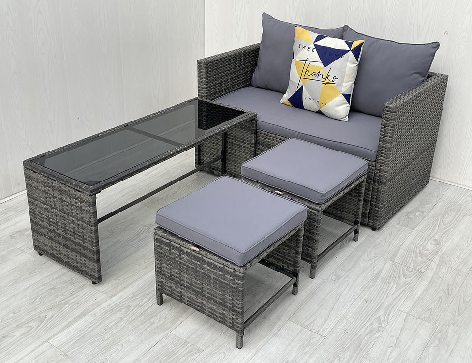 Juego de Muebles de Mimbre para Exteriores de 4 Piezas, Modelo 4P00078, con Mesa de Vidrio Templado y Estructura de Acero, para Hospital o Sala de Estar