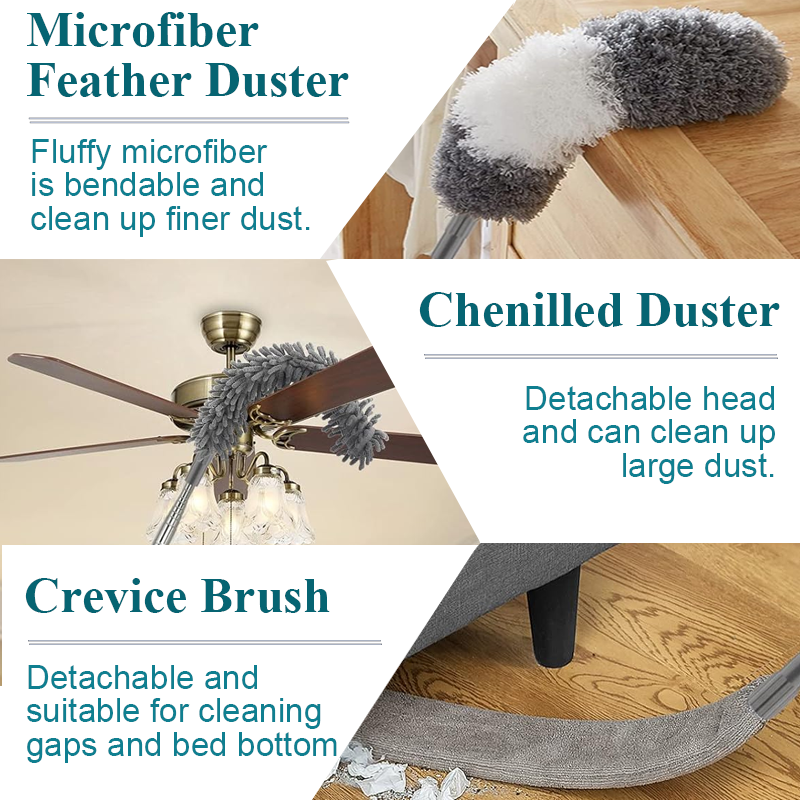 Kit de 4 plumas de microfibra telescópicas ligeras para limpiar ventiladores de techo en el hogar