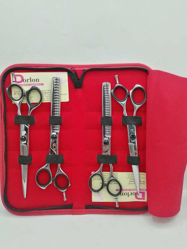 Juego de tijeras de aseo para mascotas con etiqueta personalizada privada profesional de 4 Uds., tijeras recortadoras de pelo para mascotas de acero inoxidable con ESTUCHE DE PU