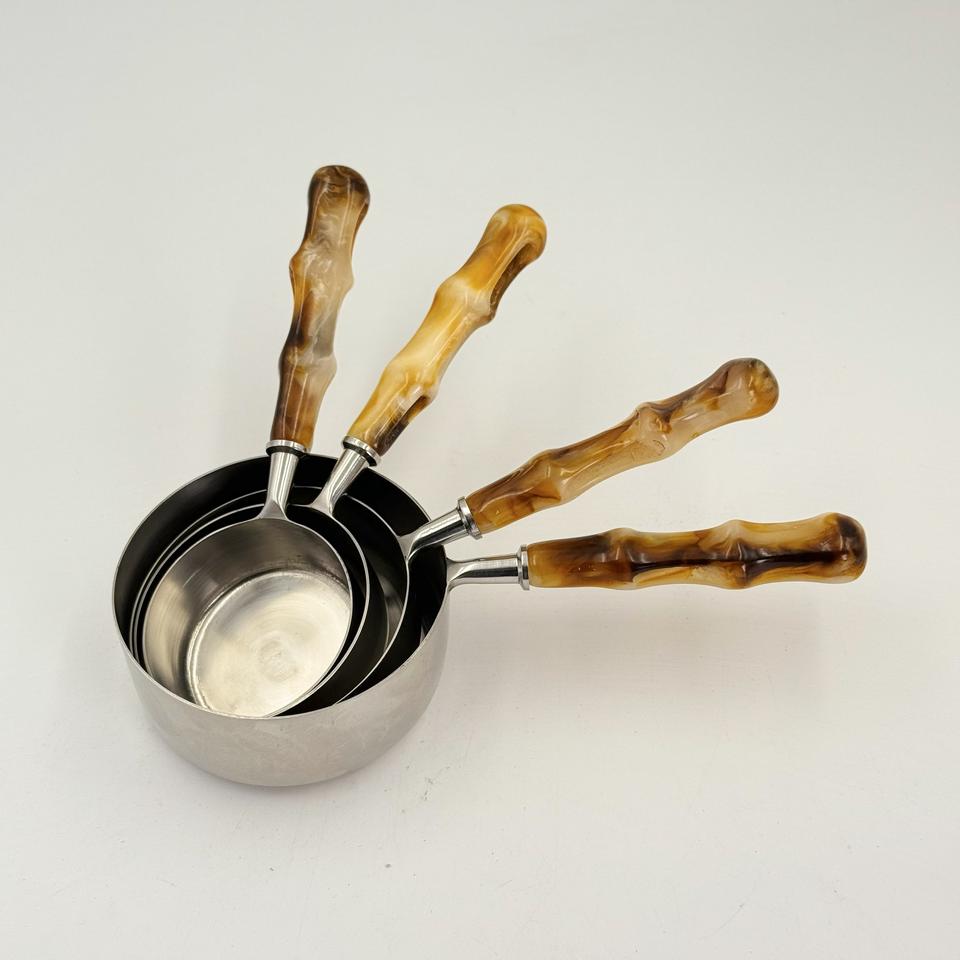 Juego de 4 Tazas y Cucharas Medidoras de Resina con Mango de Acero Inoxidable Pulido Espejo