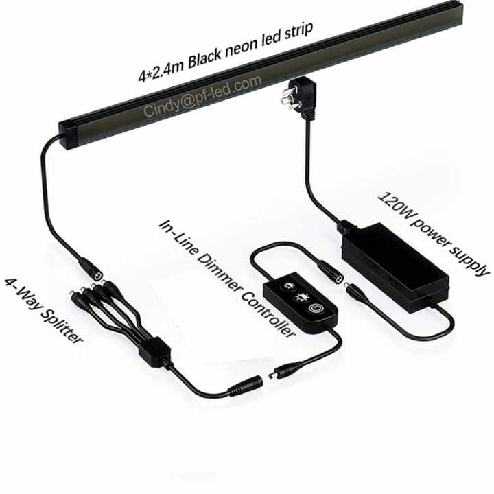 Paquete de 4 tiras de luz LED para paneles de listones de madera de 13 mm de espesor, luz cálida de neón flexible negra