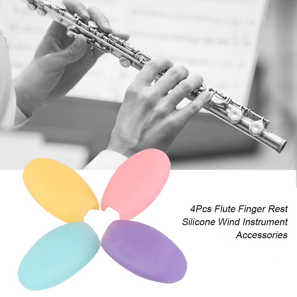 4 piezas de flauta reposapiés de silicona accesorios para instrumentos de viento Amarillo/rosa/Rosa rojo/púrpura