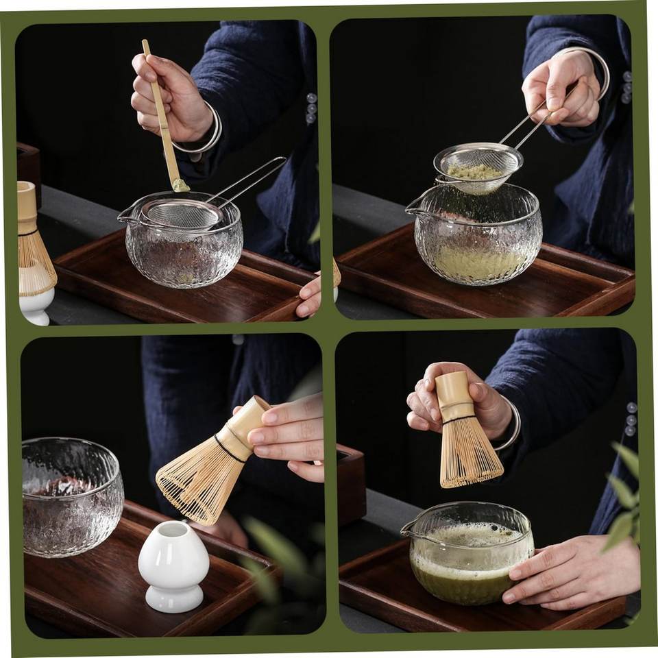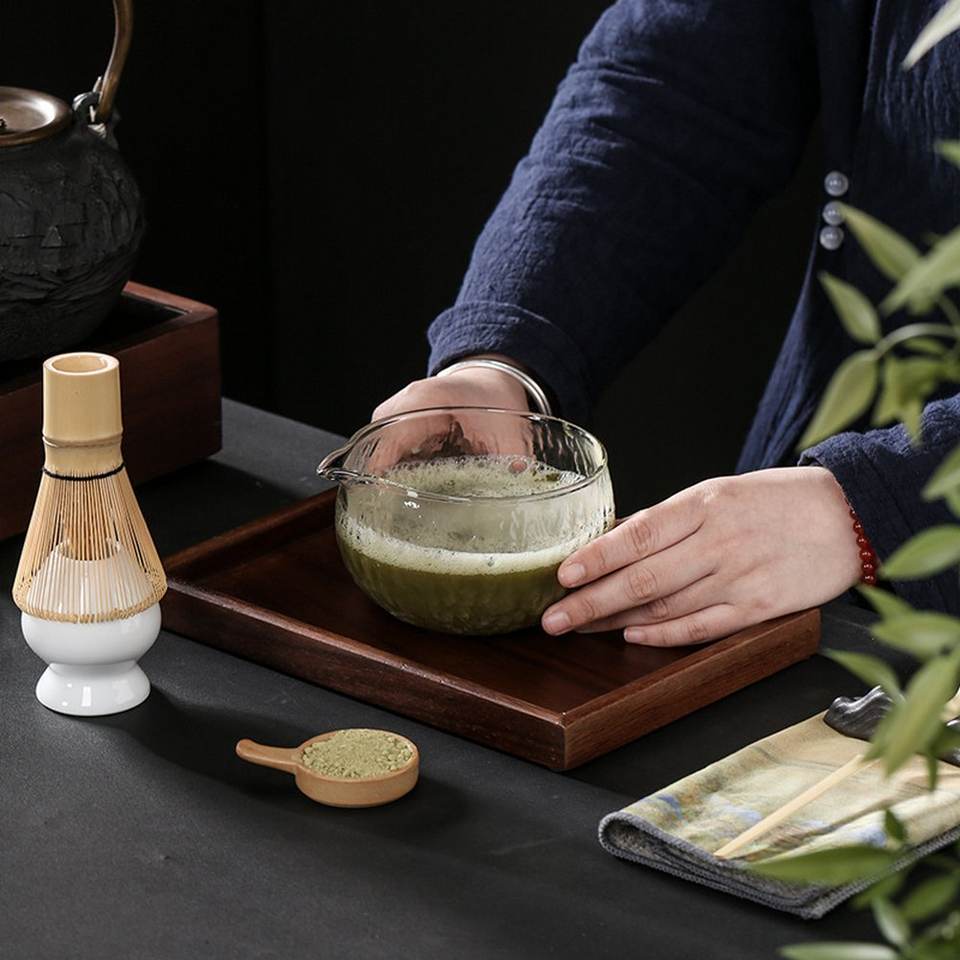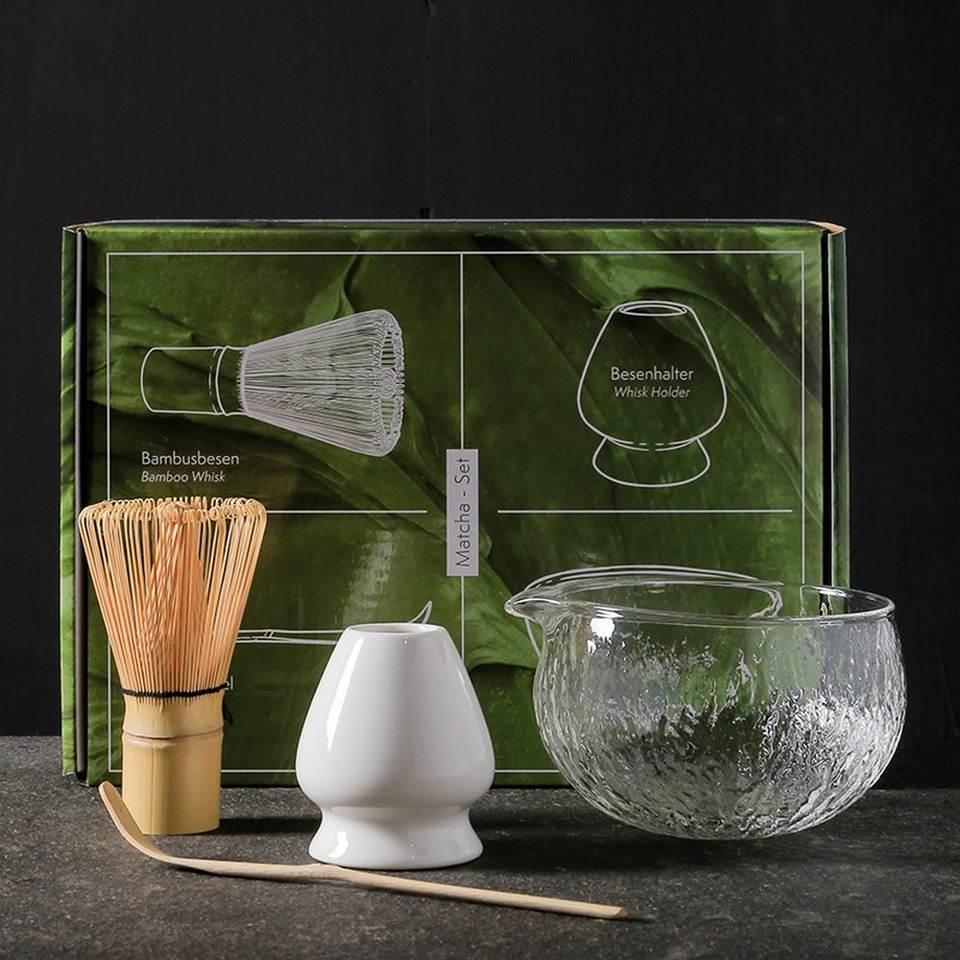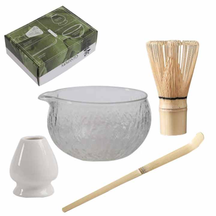 Juego de té Matcha japonés de 4 Uds., caja de regalo de vidrio transparente al por mayor, Kit de Matcha con cuenco de Caño vertedor, juego de Matcha elegante