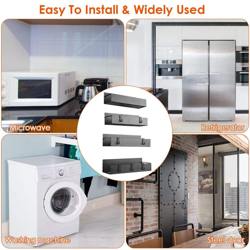 Juego de 4 Soportes Magnéticos para Especias con 8 Ganchos Extraíbles, Estante de Almacenamiento de Condimentos para Refrigerador, Microondas y Nevera