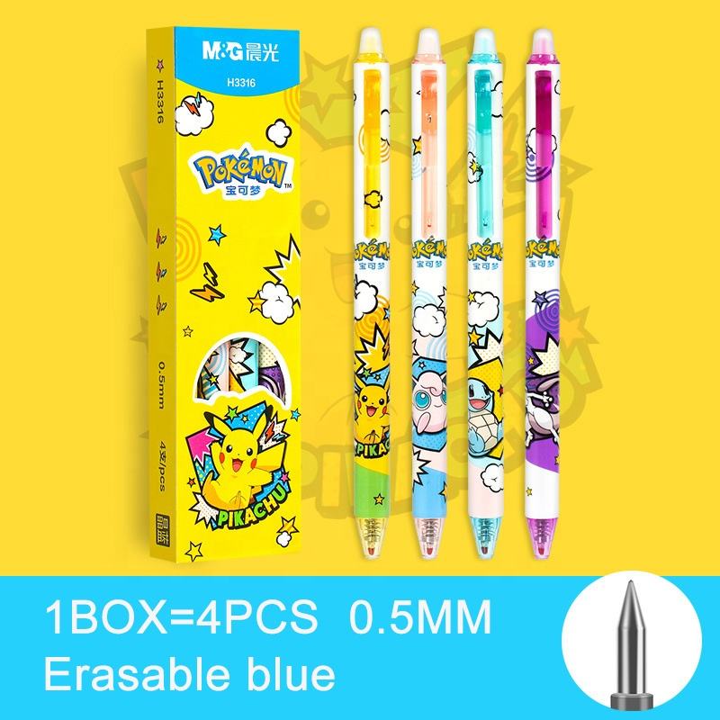 4 unids/caja Pokem-on Pikachu borrable Push Neutral Pen 0,5mm borrable Gel Pen estudiante papelería útiles escolares regalo para niños