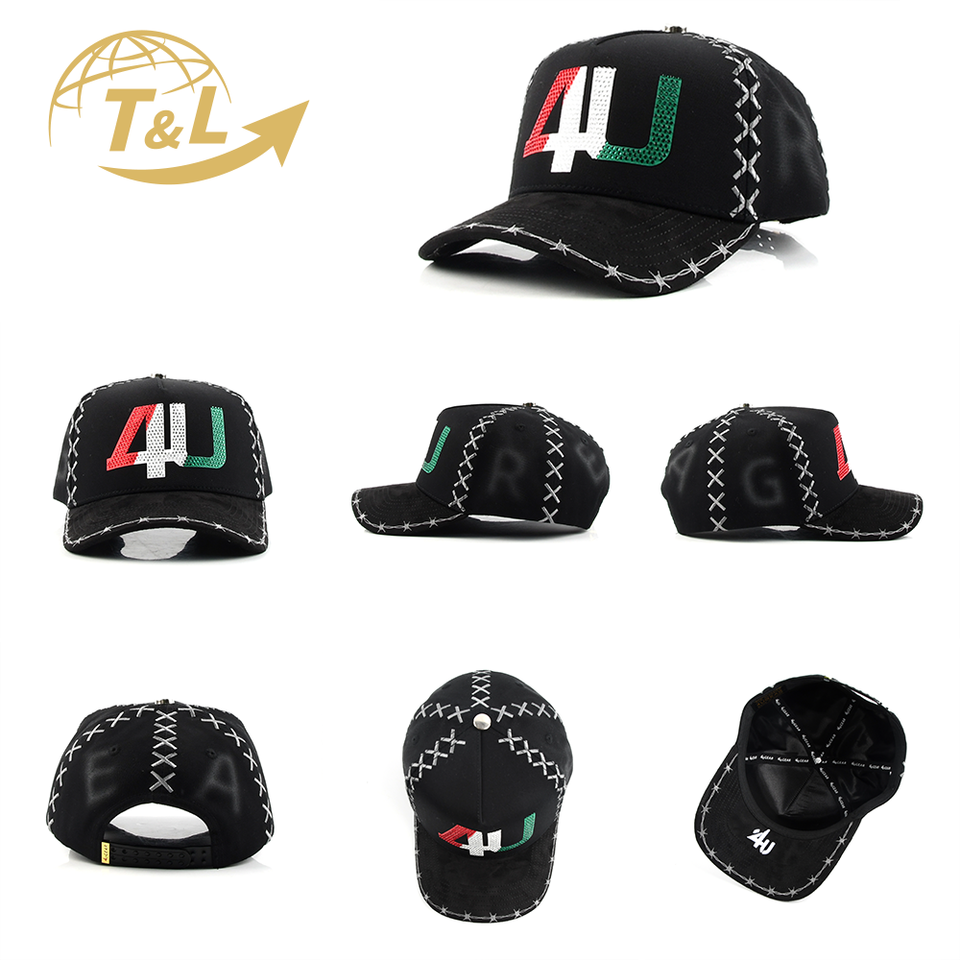 4UGEAR Custom 4U 5 Panel Gorra de béisbol Gorras Curved Brim Luxury Sport Gorras de béisbol con logotipo de diamantes de imitación personalizado Gorras