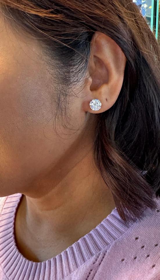 Pendientes de Diamantes Cultivados en Laboratorio, Corte Redondo, Color F, 4 Quilates, Elegantes Pendientes de Diamantes Solitarios, Joyería Fina de Lujo para Uso Diario para Mujer