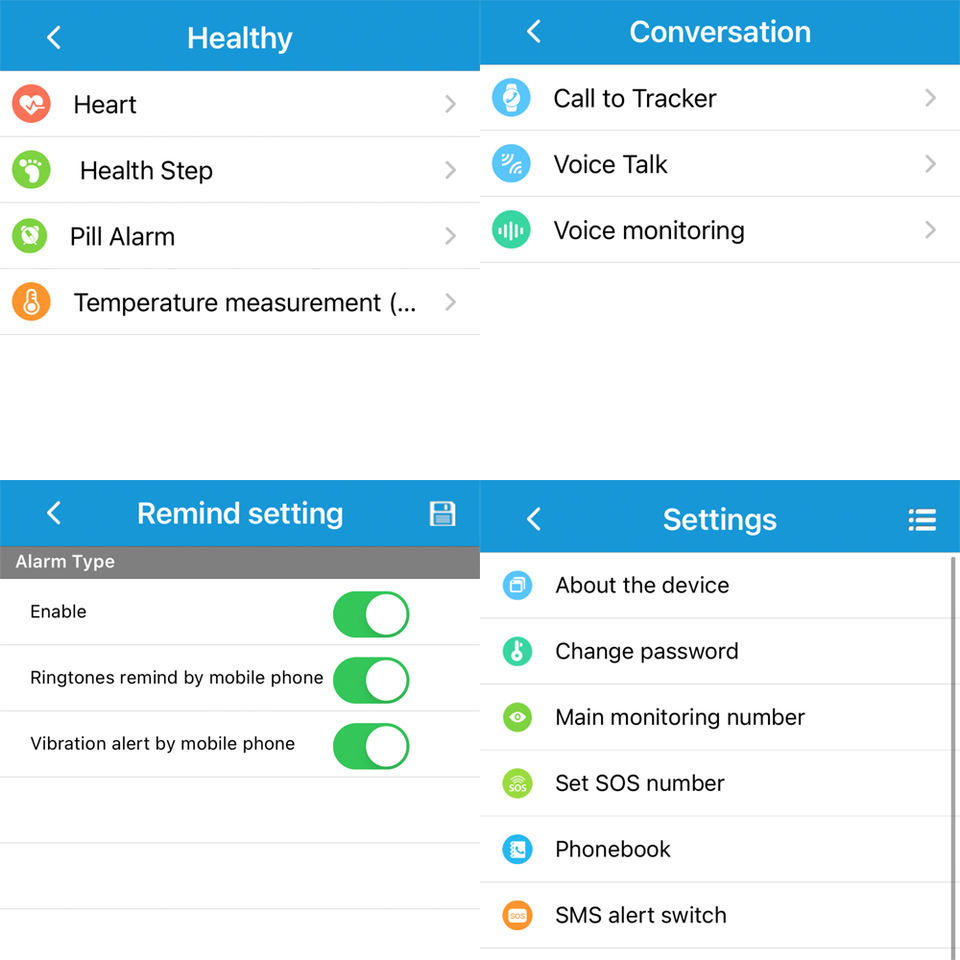 Funciones principales:Gestión de la salud: conteo de pasos, botón SOS