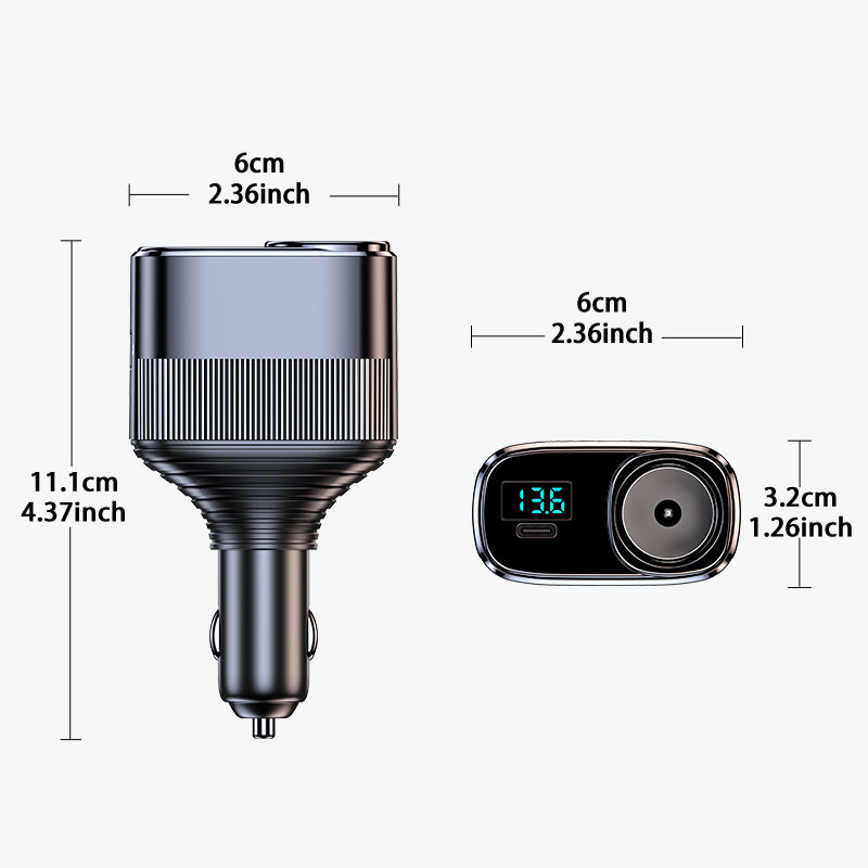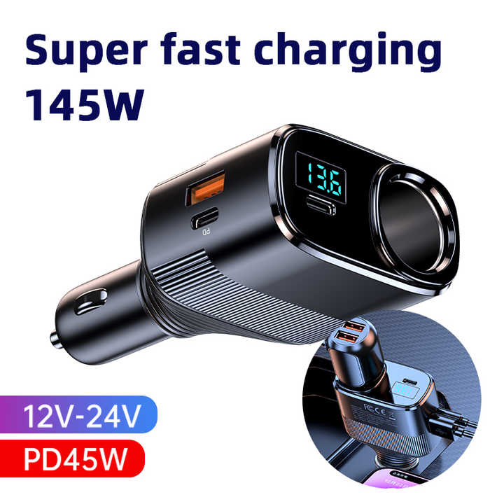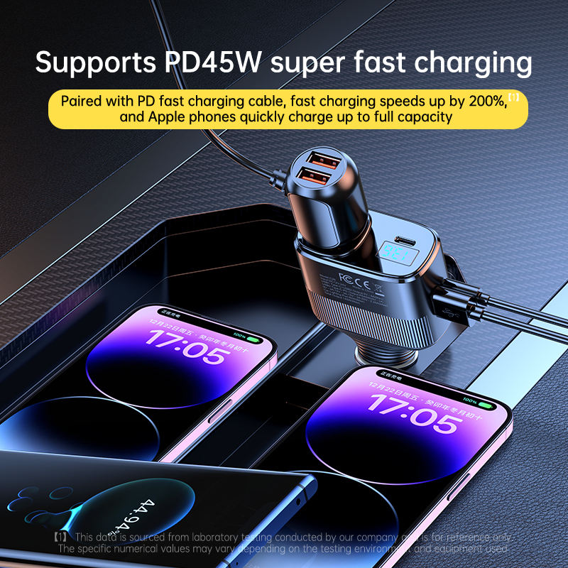 Cargador Rápido para Auto 4 en 1, 148W, 1 USB, 1 Adaptador, 2 Tipo-C, Pantalla LED, para iPhone 16/15/14 Pro Max, iPad, Ideal para Regalos