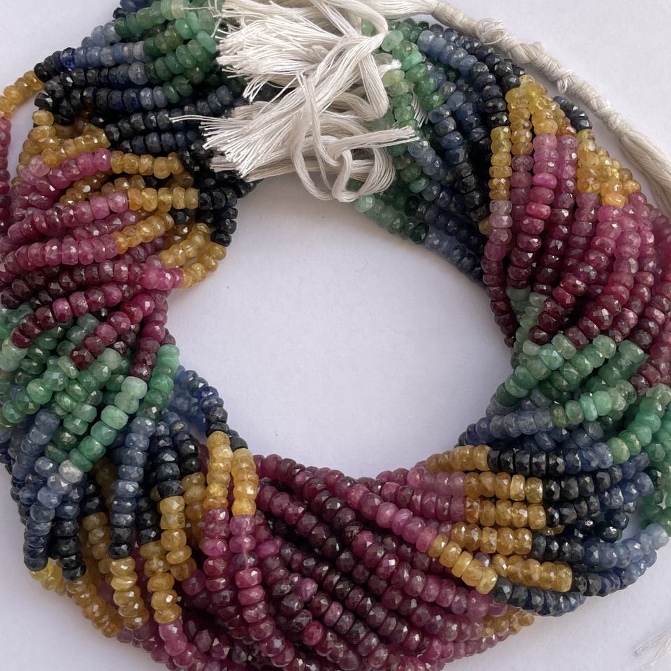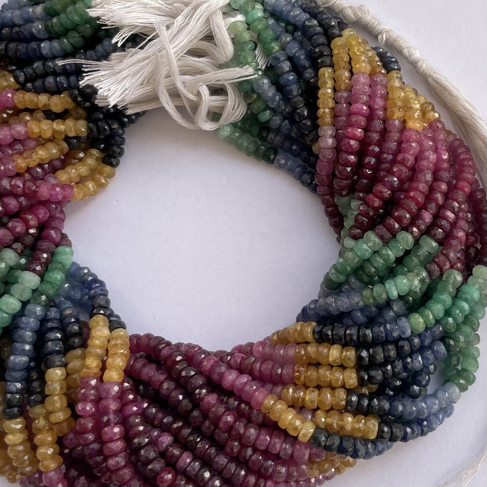 Nombre del producto:Multi Esmeralda Rubí Zafiro Precioso Facetado Rondelle Cuentas de piedras preciosas