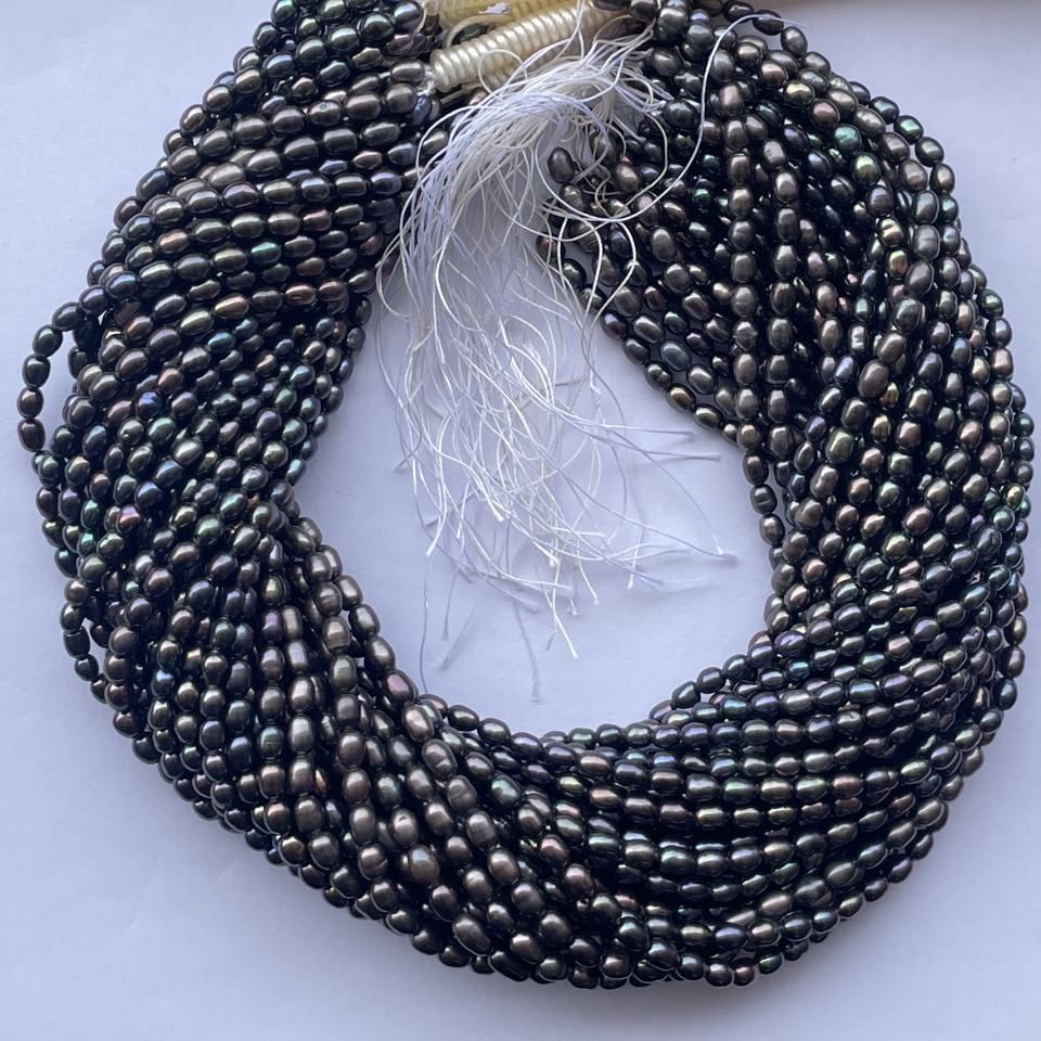 Product Name:4mm 5mm Natural Black Rainbow Color Freshwater Pearl Rice strands