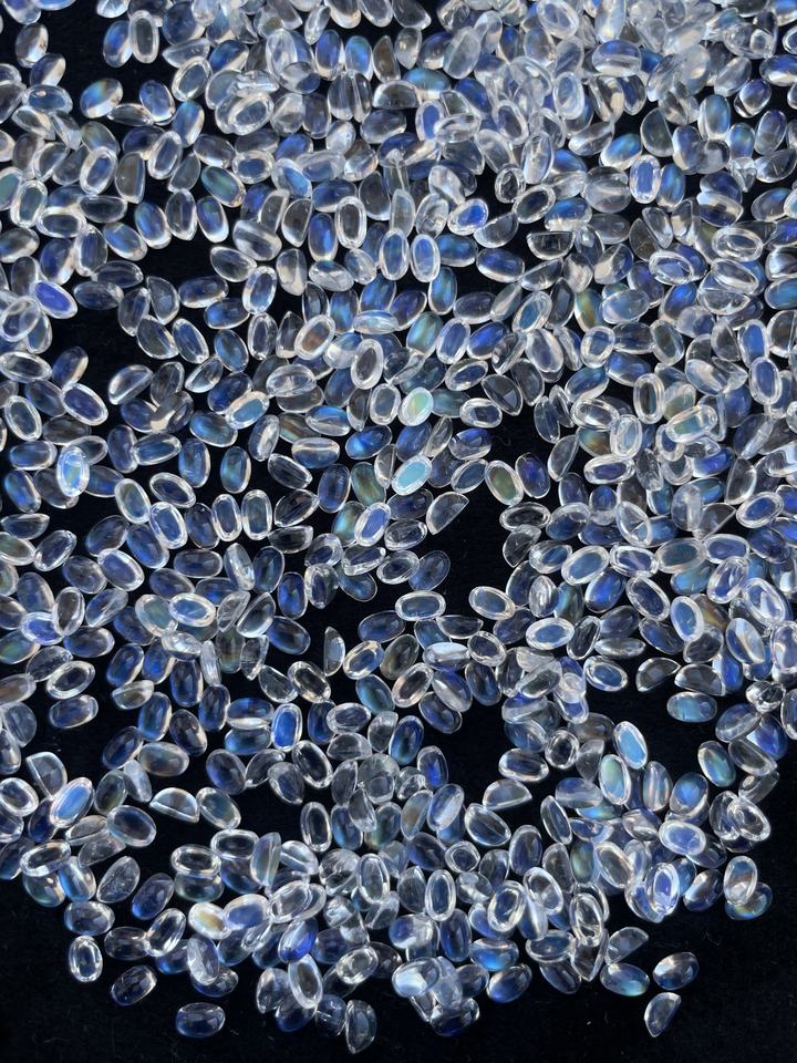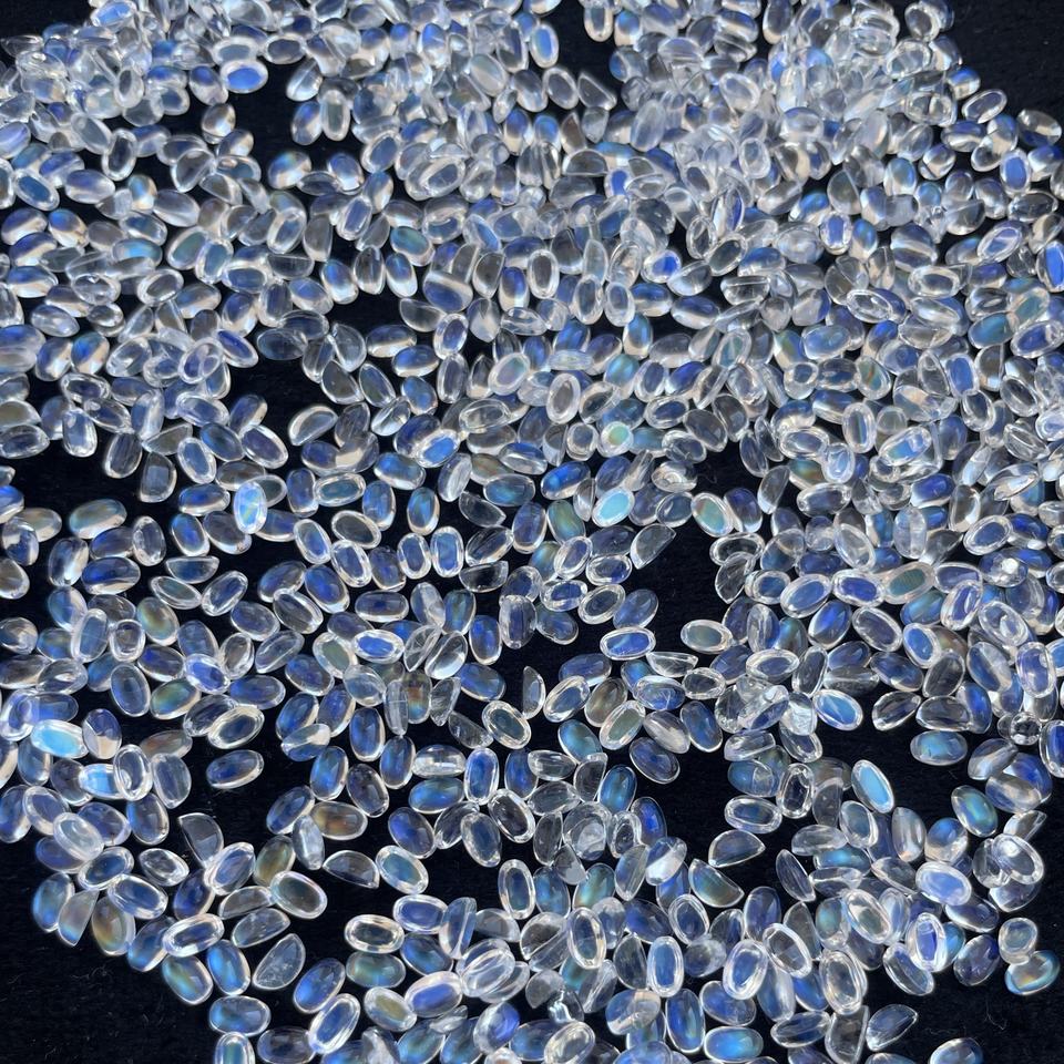 Nombre del Producto:Cabujón Calibrado Ovalado Liso de Piedra Lunar Arcoíris Fuego Azul