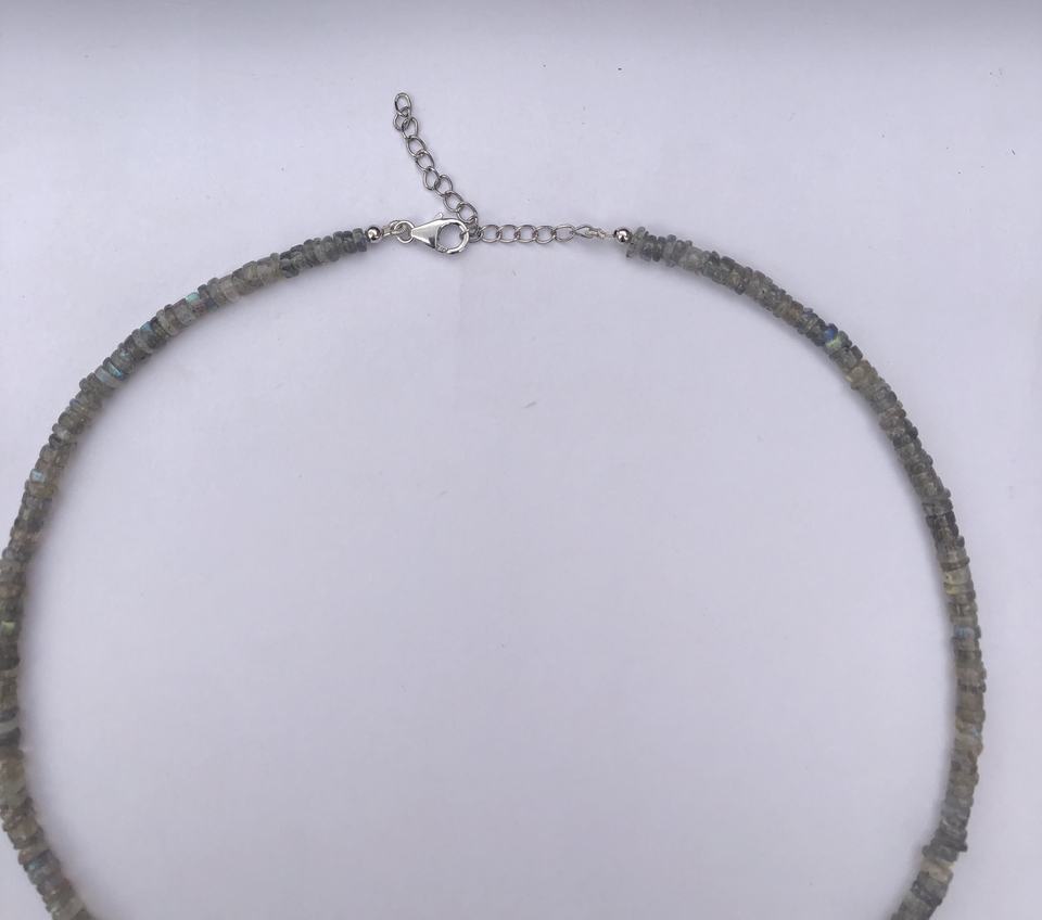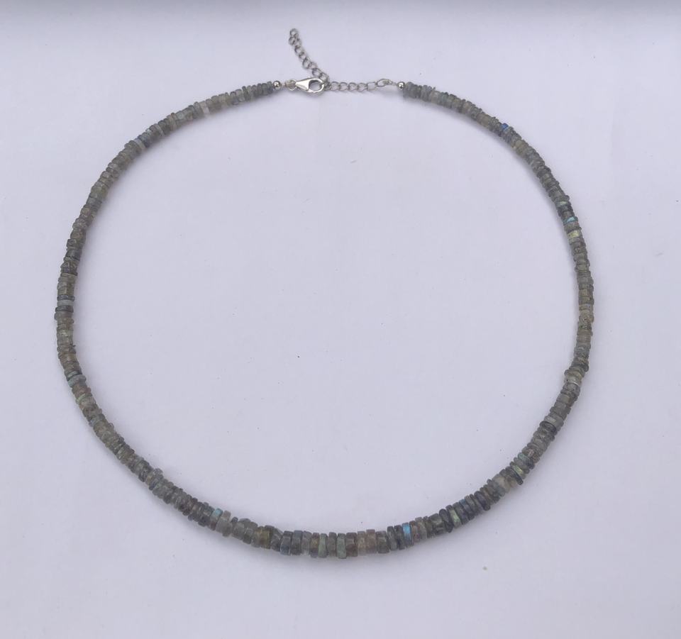 Nombre del Producto:Collar de cuentas de neumáticos Heishi lisas de labradorita gris natural