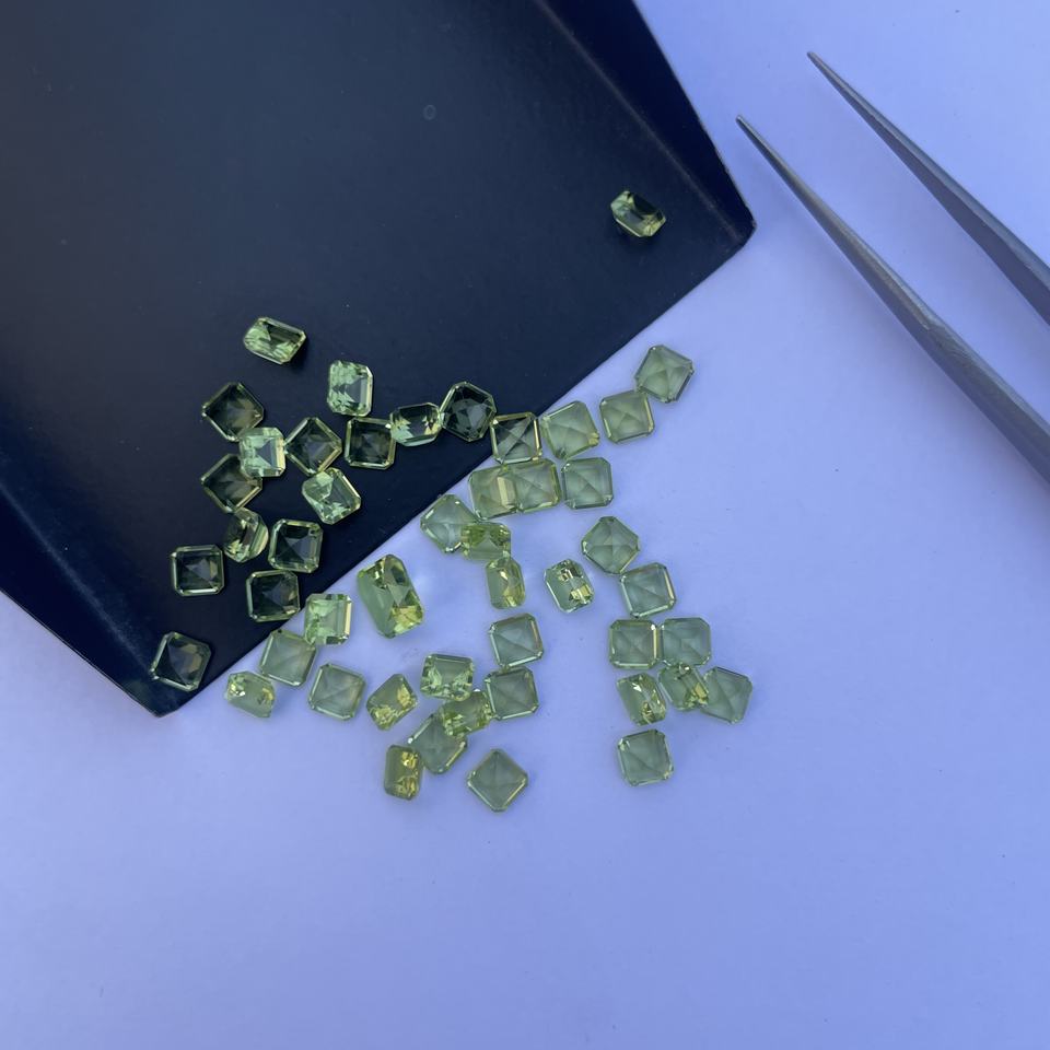 Nombre del producto:Piedras preciosas sueltas de peridoto verde natural de 4 mm y 6 mm, talla cuadrada y octogonal