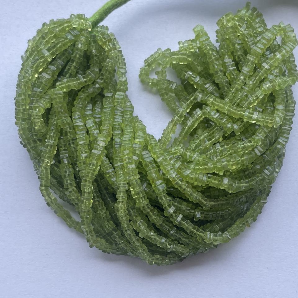 Nombre del producto:4mm 6mm Natural Peridot liso plano cuadrado Heishi cuentas de piedras preciosas