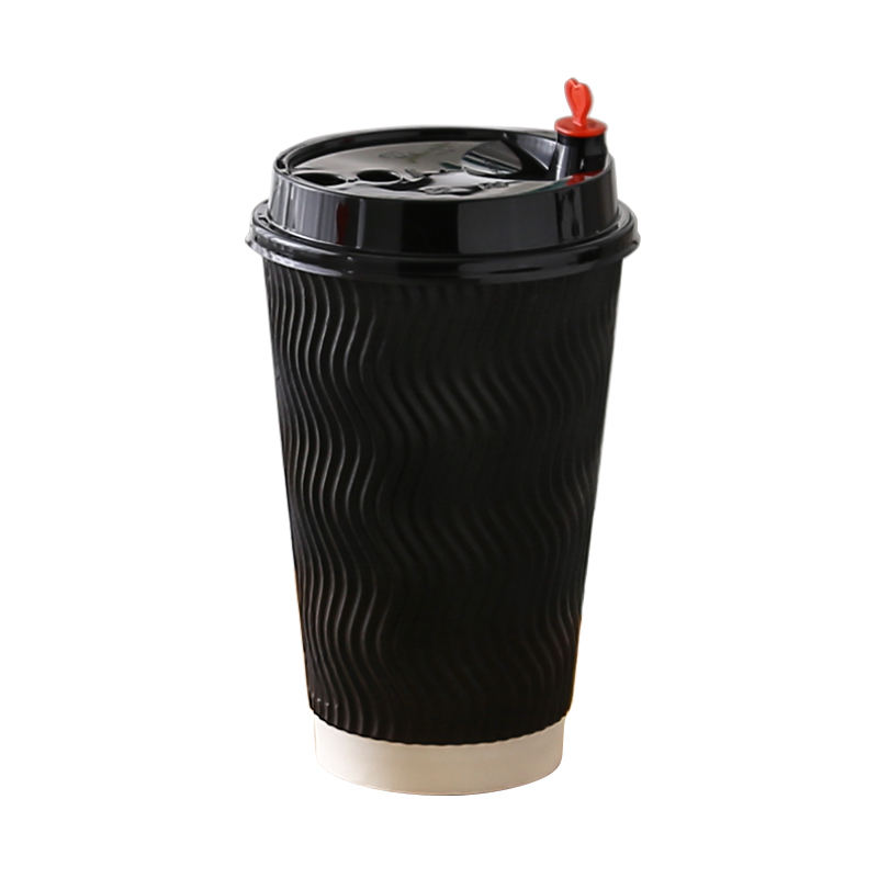 4oz 8oz 12oz desechable doble pared lámina de oro estampado logotipo personalizado Todo Negro taza de papel de café caliente con tapa PS