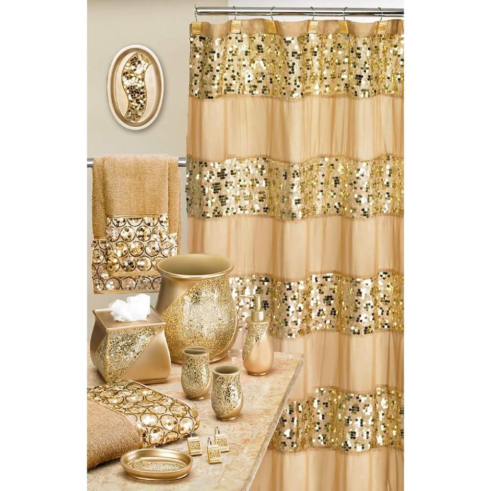 Juego de 4 Accesorios Modernos para Baño, Dispensador de Jabón, Vaso, Portacepillos y Jabonera en Color Dorado Champán