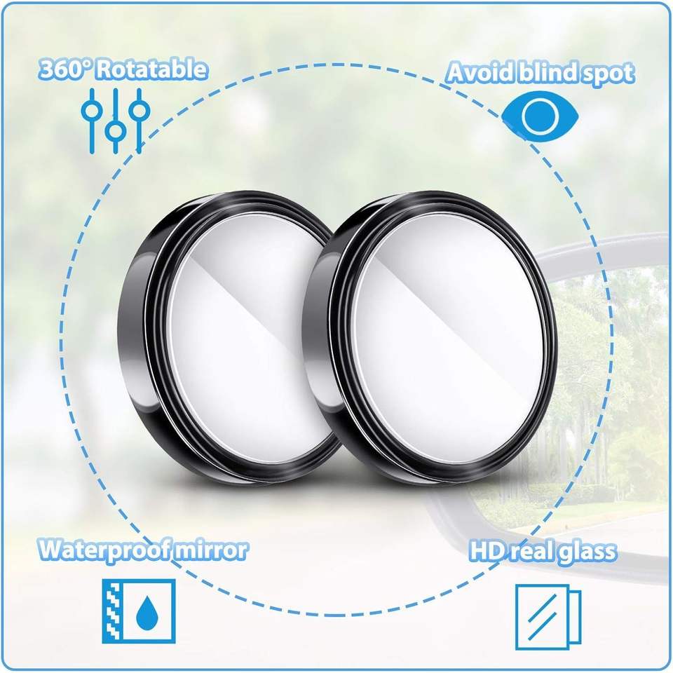 4 Espejos Convexos de Vidrio Negro de 2 Pulgadas, Ajustables 360 Grados, para Puntos Ciegos del Retrovisor del Coche, Espejos Convexos de Gran Angular