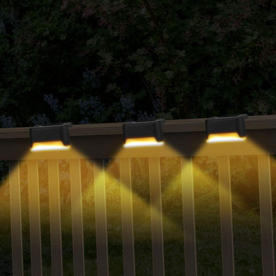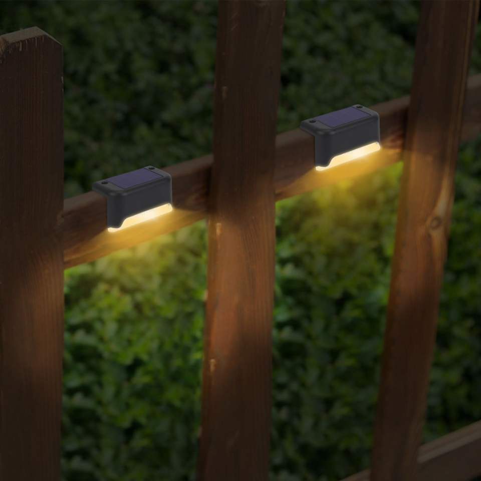 4 Luces LED Solares para Escalones, Impermeables IP55, con Sensor de Anochecer al Amanecer, Lámparas para Cercas, Iluminación Exterior para Jardín