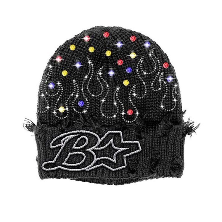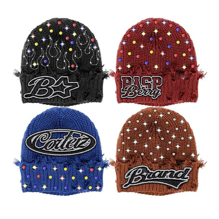 Juego de 4 Gorros de Punto con Pedrería y Parche de Llama, Gorros Brillantes de Invierno, Estilo Urbano, Personalizables para Hombres, Mujeres, Bebés y Niños