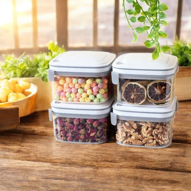 4 contenedores de hierbas sellados al vacío para uso en la cocina, almacenamiento a granel de cereales y granos