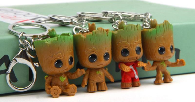 4 unids/set versión Linda bebé Groot árbol hombre vinilo figura llavero dibujos animados muñeca colección modelo Juguetes