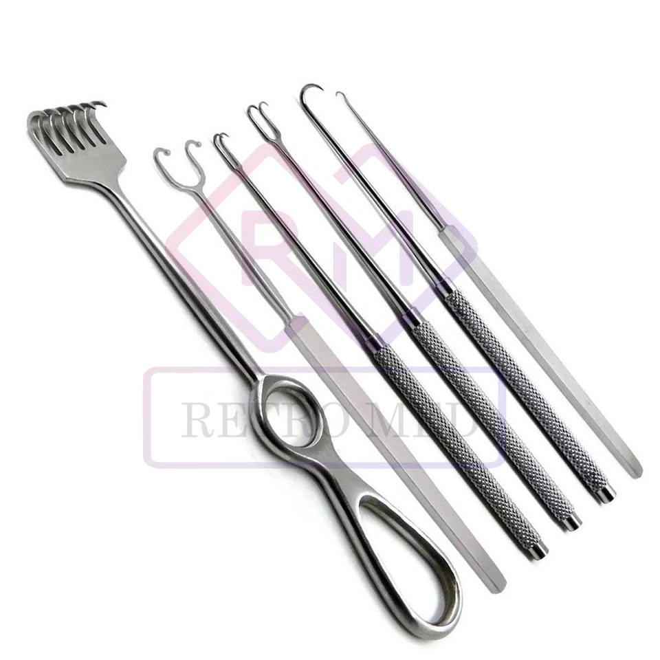 Juego de 4 Instrumentos Quirúrgicos Veterinarios MEDICAB INSTRUMENTS, Retractor de Piel con Gancho Manual de Acero Inoxidable