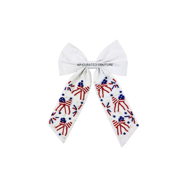 Lazos de cuentas personalizados para el 4 de julio, lazos de moda con cuentas, accesorio para el cabello en tendencia, lindos lazos para el cabello hechos a mano, lazos patrióticos de moda.