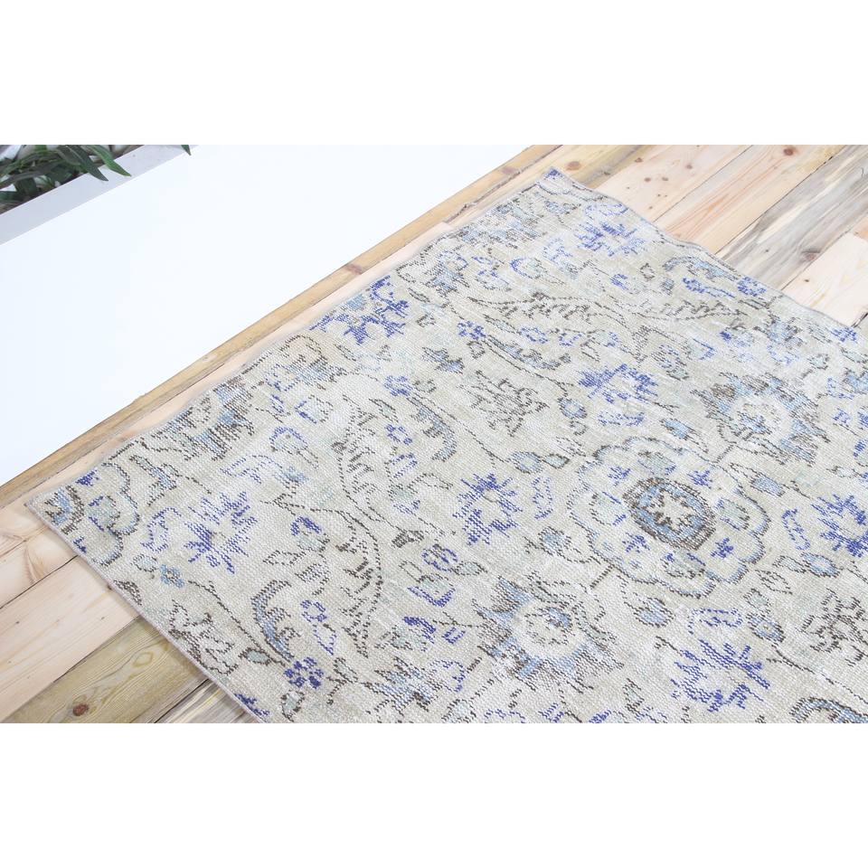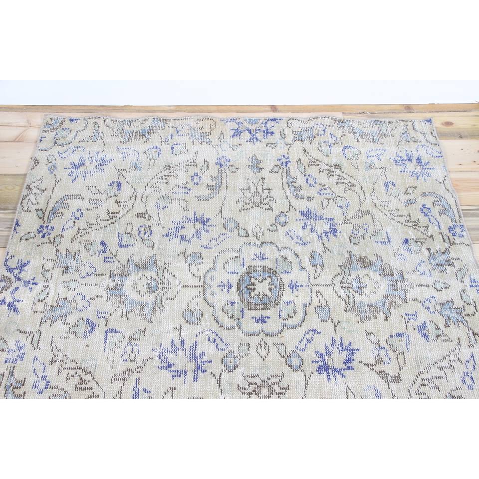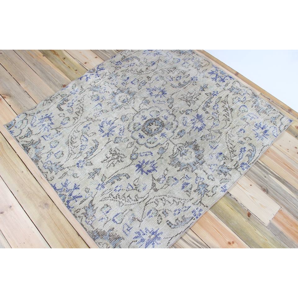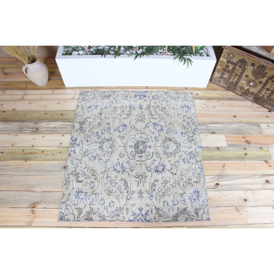 Alfombra Turca Decorativa de 4x4.5 pies, Alfombra Vintage con Diseño Floral Azul