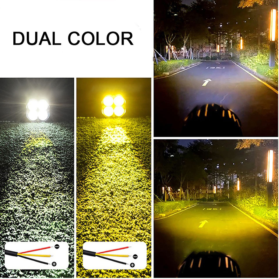 Faro LED 4x4 de 3 pulgadas blanco/ámbar para motocicleta, luz de trabajo, antiniebla, DRL para coche/camión/ATV