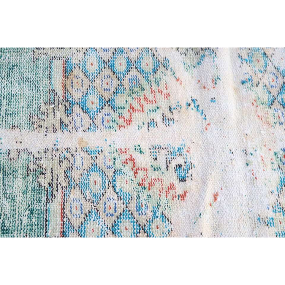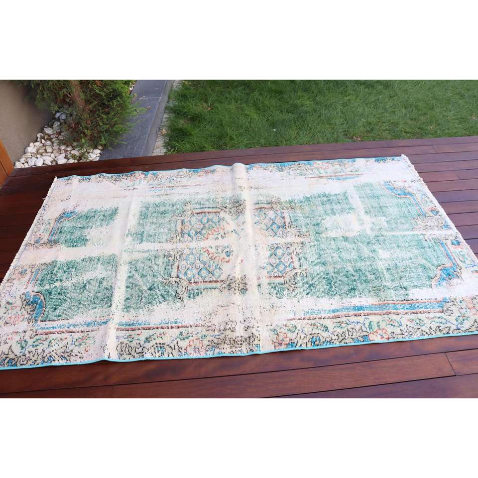 Alfombra Turca de 4x6.8 pies, Alfombra Vintage, Alfombra de Lana con Diseño Floral Azul Verde