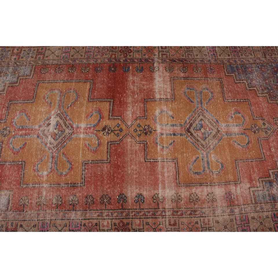 Alfombra Vintage de 4x8.3 pies, Alfombra Turca, Alfombra de Lana con Degradado Rojo y Azul