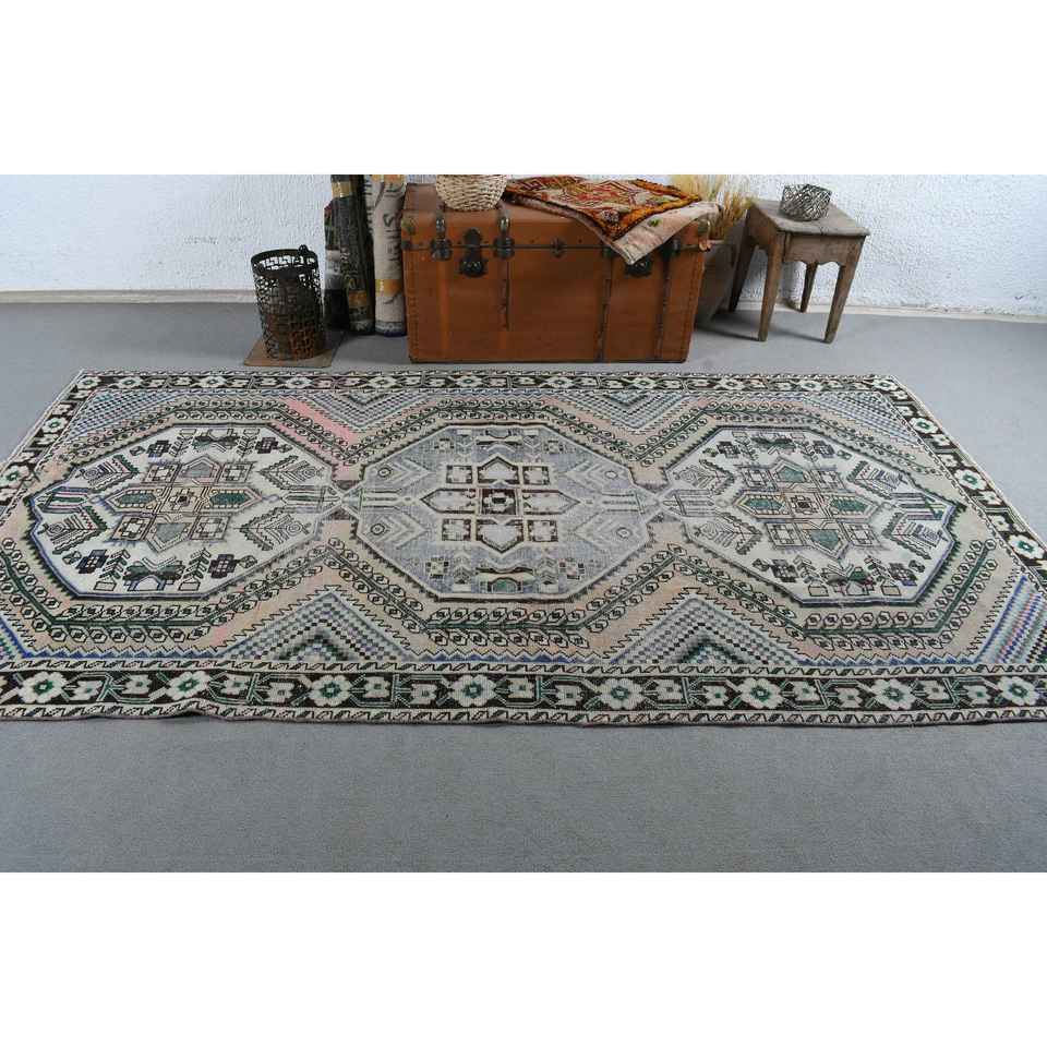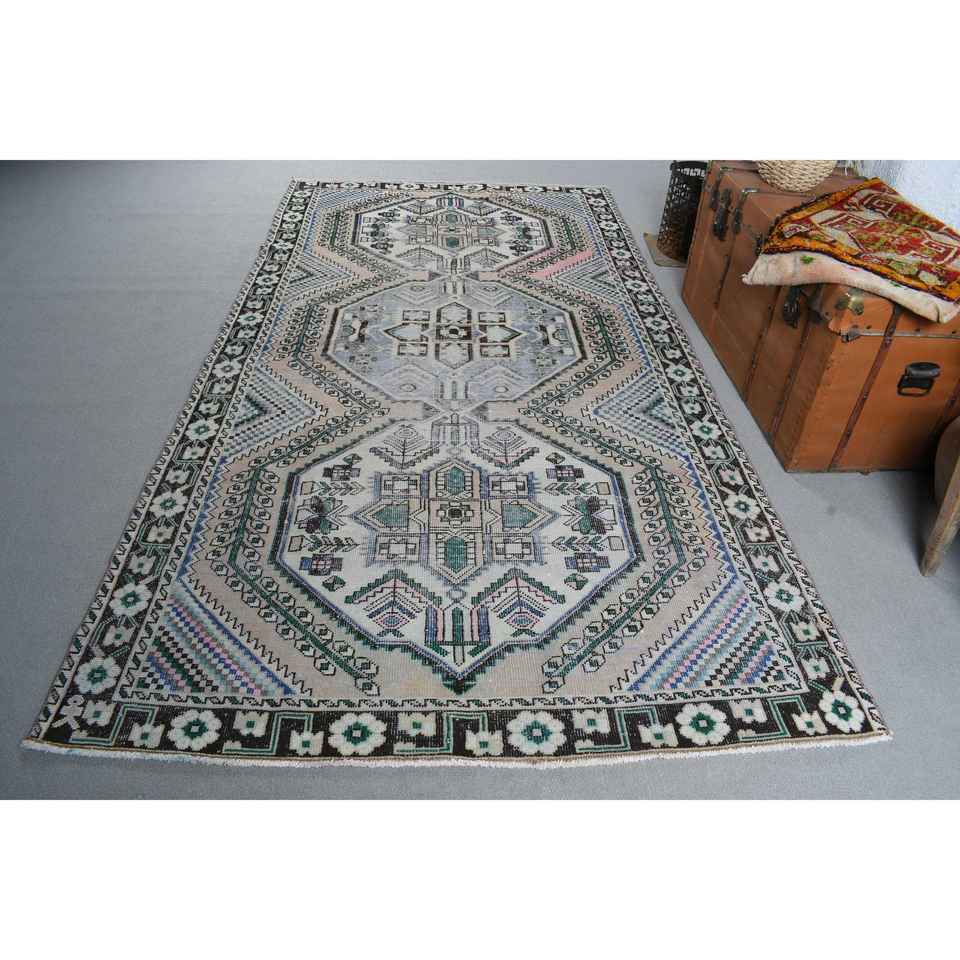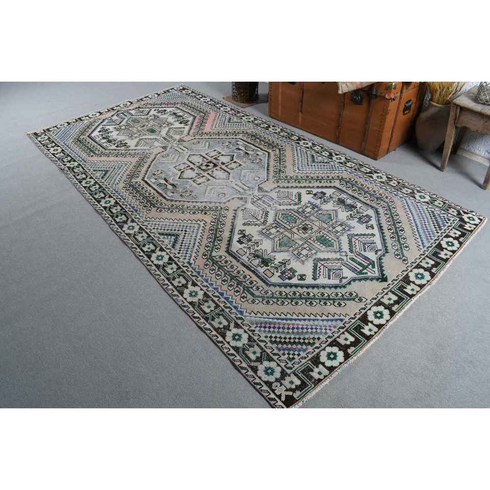 Alfombra de 5.1x9.4 pies, Alfombra Turca Vintage Grande, Alfombra de Lana Azul