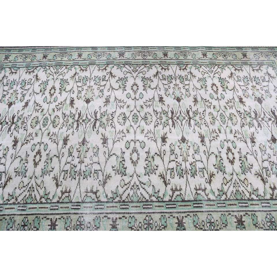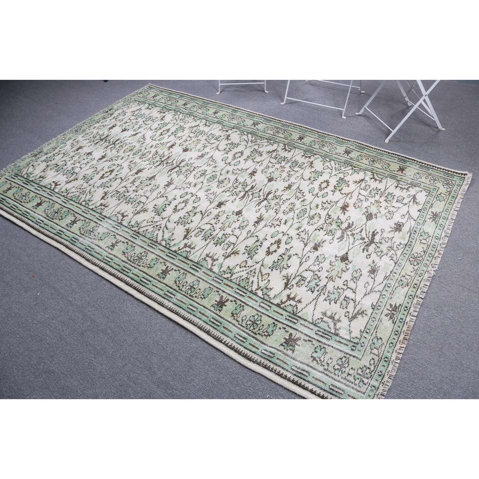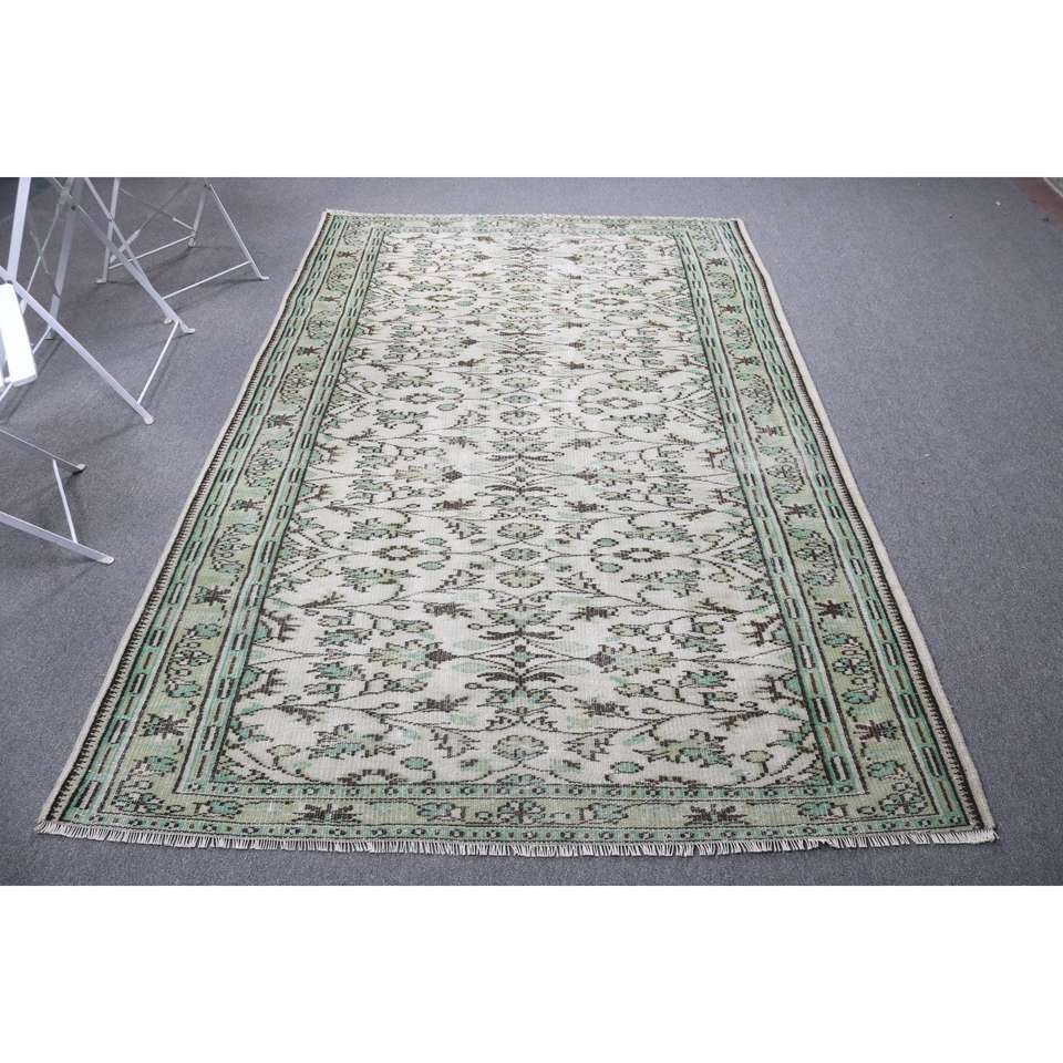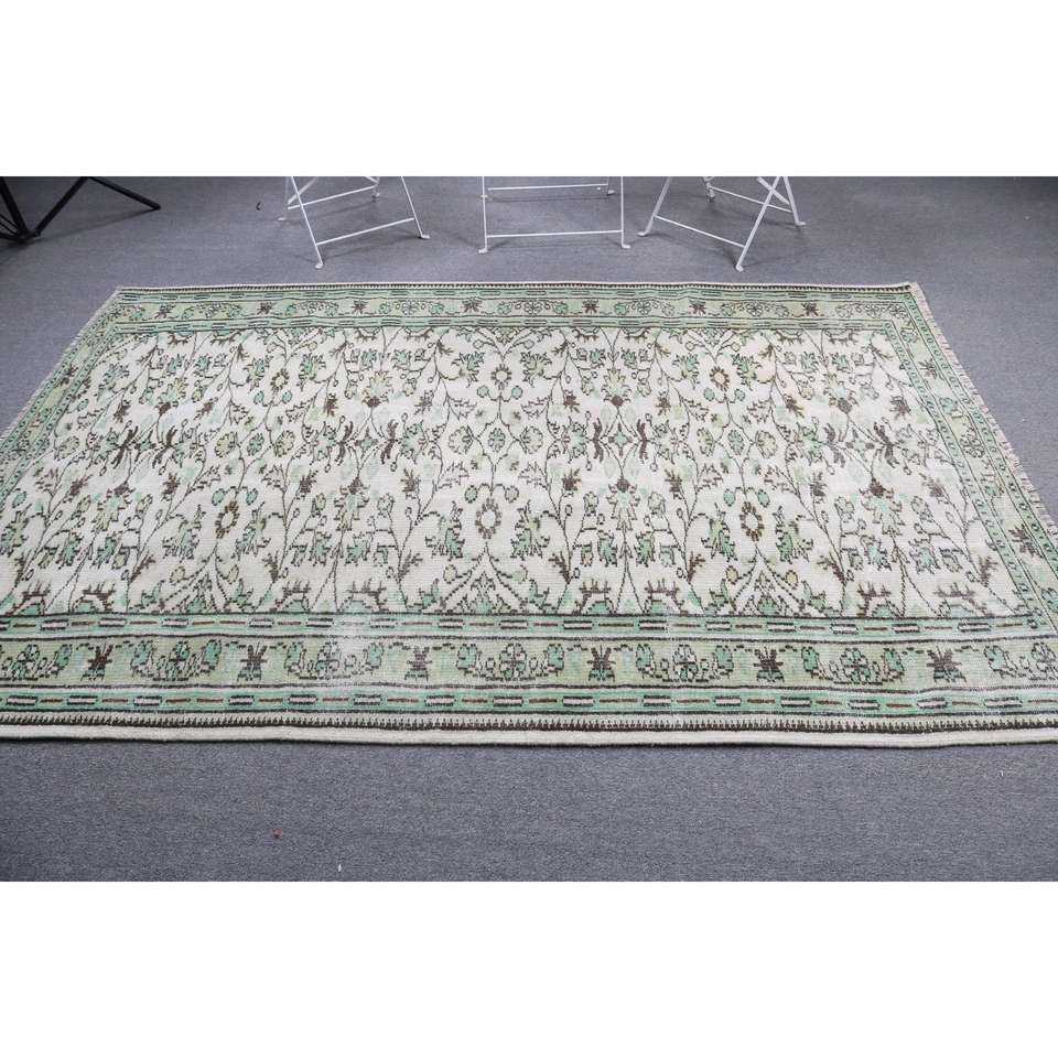 Alfombra de 5.2x8.1 pies, alfombra turca vintage, alfombra de lana con motivos de plantas y árboles verdes