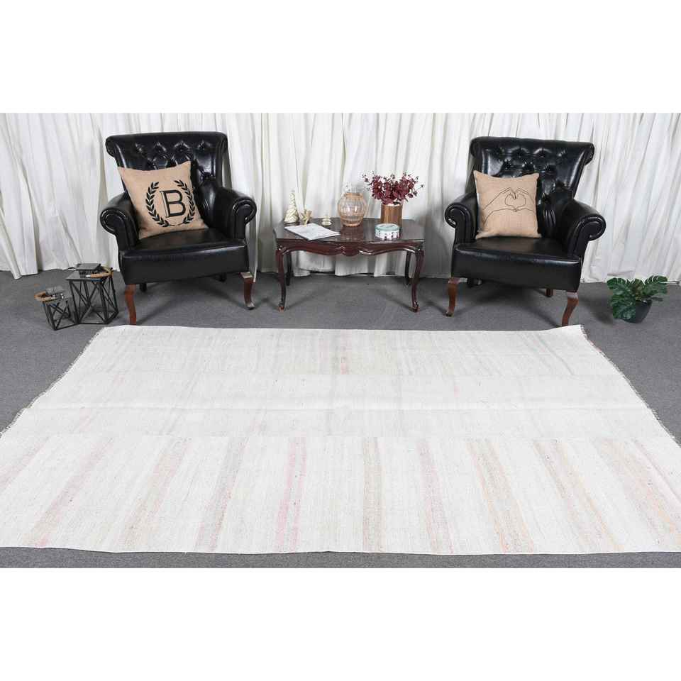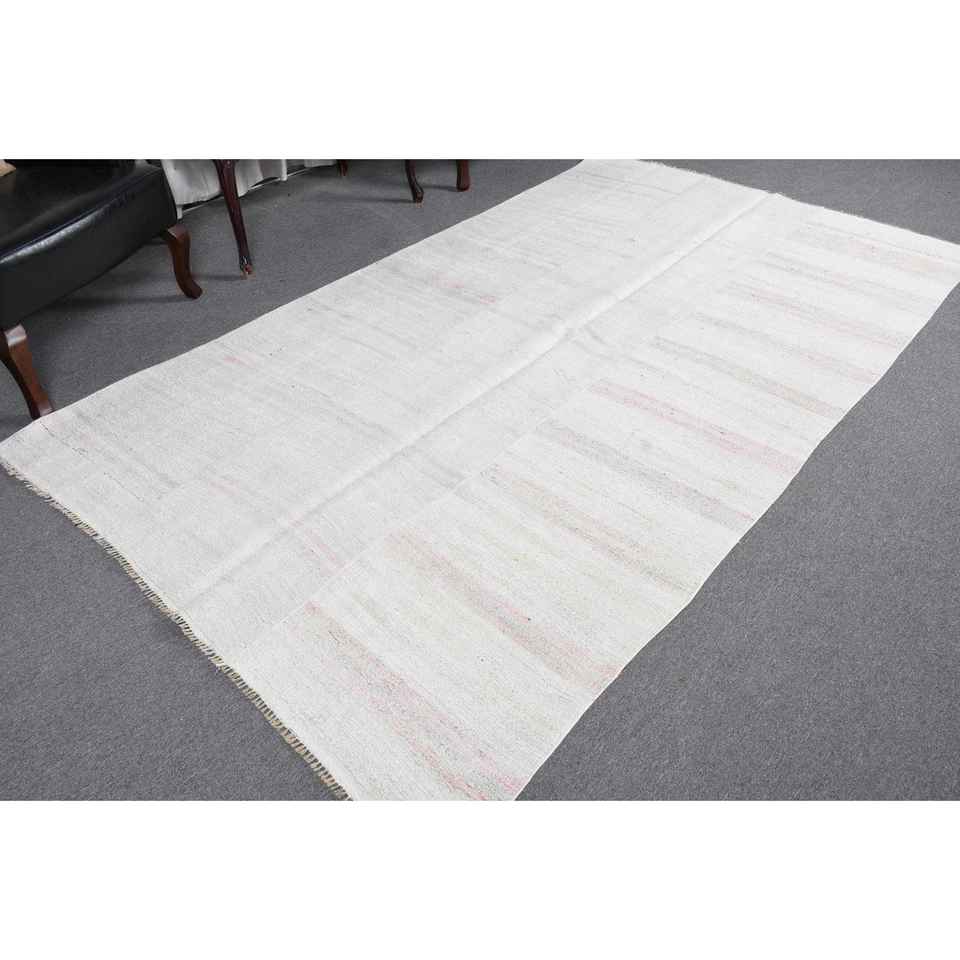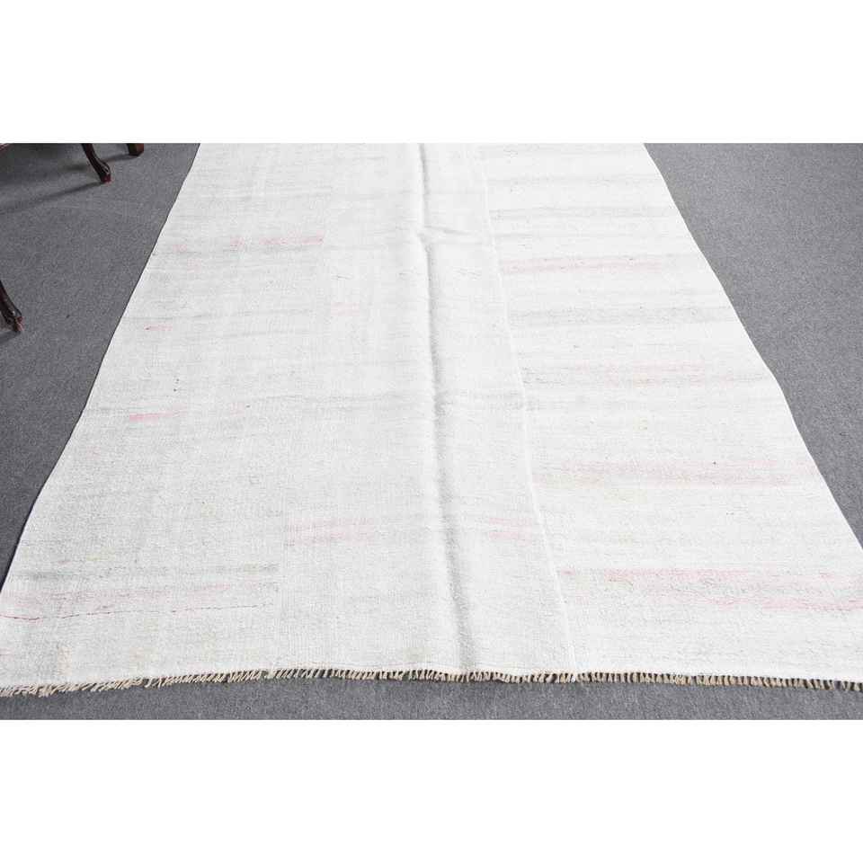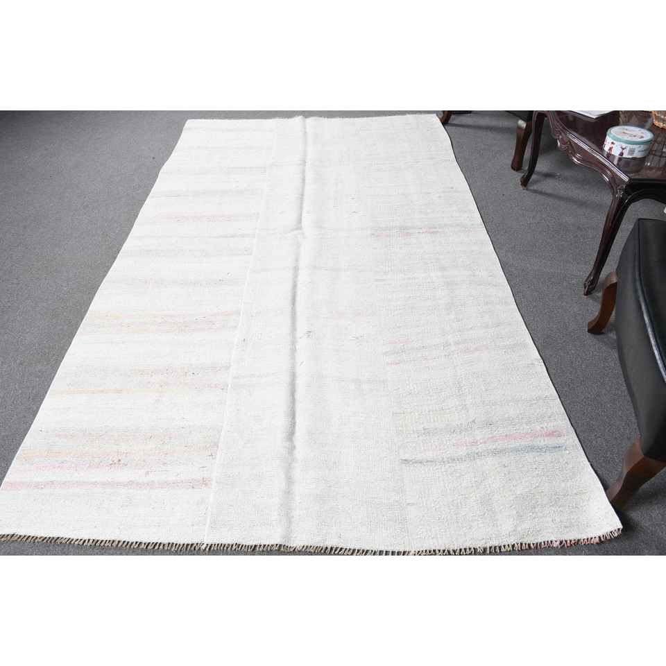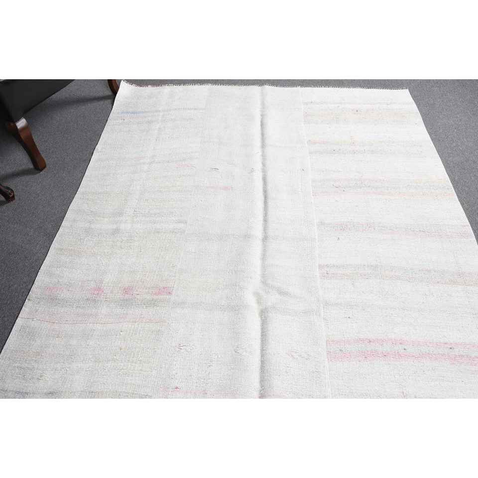 Alfombra Turca Vintage Blanca de Lana del Suroeste de 5.2x8.9 pies, Diseño de Patchwork Ecológico con Respaldo de Látex