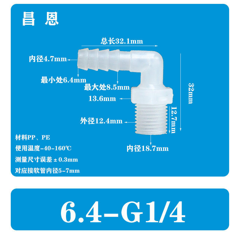 Codo de 5/32 pulgadas con rosca macho 3.9-G1/8Especificaciones del Producto