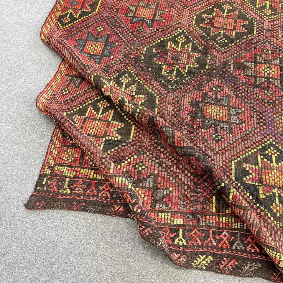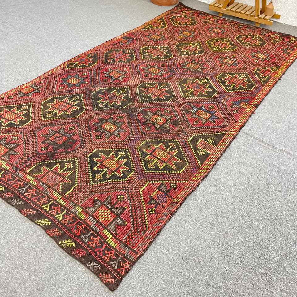 Alfombra de lana patchwork de 5.3x10 pies, grande, vintage, roja, oriental, con base de látex, decoración ecológica para el hogar