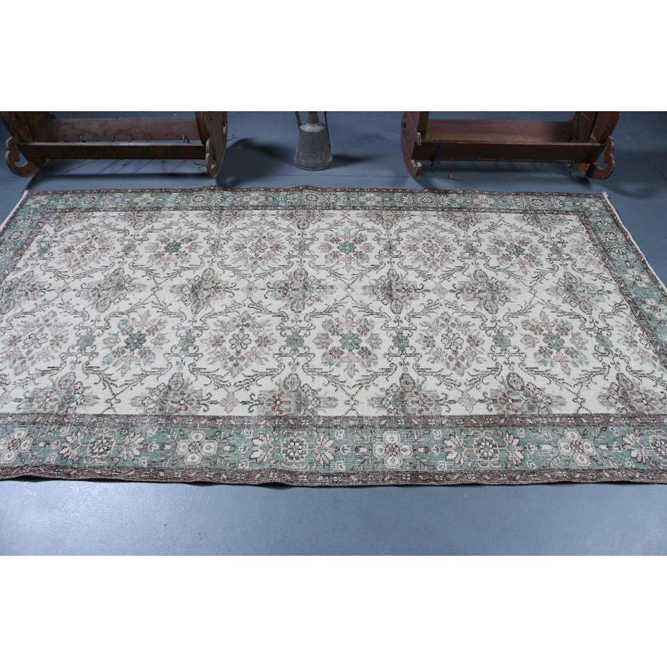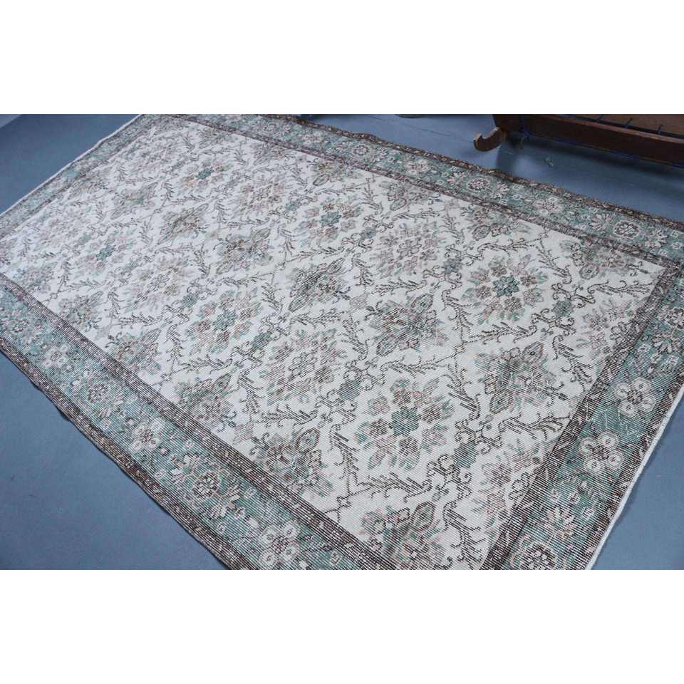 Alfombra Turca de 5.3x9.2 pies, Alfombra Vintage Grande, Alfombra Blanca con Estampado Animal